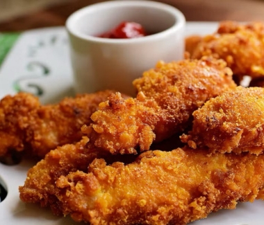 Accompanied by a generous helping of golden, crispy chips on the side, adding a satisfying crunch to every mouthful